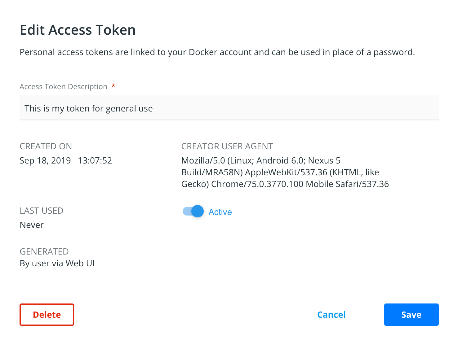 Docker Hub lets you create personal access tokens as alternatives to your password. You can use tokens to access Hub images from the Docker CLI.